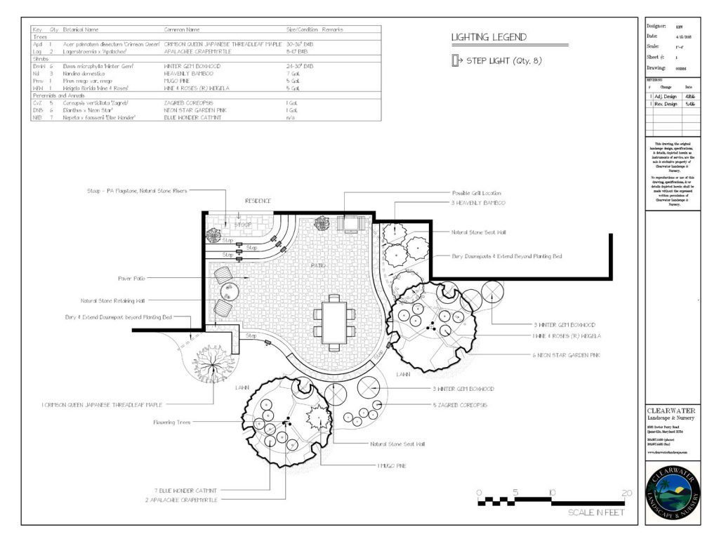 If you elect this option, based on your feedback and our ideas after the presentation of the conceptual plan and project budgets, our team will prepare your final plan. The final plans are scale working drawings with all hardscape and individual plant identification, including material specifications, plant identification, and location of included lighting and drainage features. These plans, along with requested or required supplemental construction details or engineering, will be suitable for use in installing your new project.